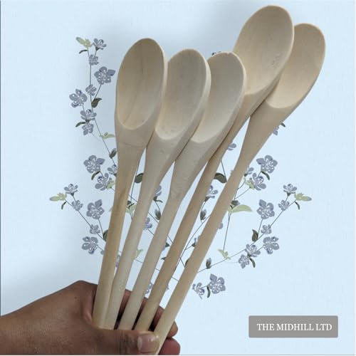 5 x MIDHILL Wooden Oval Spoon for Baking and Cooking, Hand Crafted, Non Stick Friendly Kitchen Essential