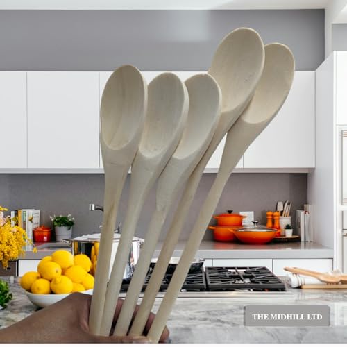 - Discover the ultimate kitchen companion with the MIDHILL Wooden Oval Spoon Set, featuring five expertly crafted utensils in 3x10" and 2x12" sizes. Perfectly designed for both cooking and baking, these spoons are a must-have for every culinary enthusiast. The wooden construction ensures they remain non-stick friendly, making them ideal for use on delicate surfaces without the risk of scratching or damaging your cookware. Whether you're sautéing vegetables, mixing batter, or folding in ingredients, these versatile spoons excel in every task, allowing you to cook with confidence.