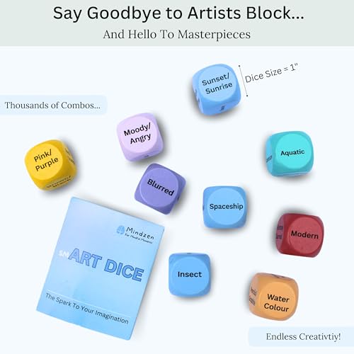 Are you ready to take your artistic skills to the next level? Meet Mindzen's smART DICE Drawing & Painting Game—a delightful and innovative tool designed to spark your creativity and imagination. This unique set features 9 vibrant, colour-coded wooden dice that present an exciting challenge for artists of all levels.