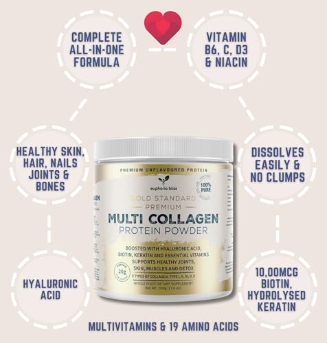 Are you ready to elevate your beauty and wellness routine? The Euphoria Bliss Multi Collagen Protein Powder is your ticket to unlocking radiant skin, luscious hair, and strong nails. With a unique blend of five collagen types, this supplement provides fundamental support for your body's connective tissues, ensuring that you not only look your best but feel great too.