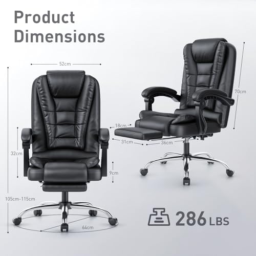 - Elevate your workspace with the Naspaluro Executive Office Chair, a perfect blend of comfort, style, and functionality designed for both home and office environments. This ergonomically designed chair features a high back that contours to your body shape, offering exceptional support for your upper and lower back. Say goodbye to discomfort during long hours of work! The added retractable footrest allows you to kick back and relax whenever you need a break, making it ideal for those busy days when you need a quick nap or simply want to unwind. What sets this chair apart is its remarkable adjustability. The backrest can tilt and lock between 90° and 130°, so whether you're focused on a project, enjoying a well-deserved rest, or catching up on emails, you can find the perfect angle. Plus, the seat height is adjustable by 10cm, ensuring everyone can find their ideal position. The 360° swivel function enhances multitasking, allowing you to move around your workspace effortlessly. Crafted from high-density foam and covered in premium PU leather, the chair not only provides comfort but is also easy to maintain. The skin-friendly material resists wear and tear, while the robust metal bracket and legs ensure lasting durability. Assembly is a breeze, taking only about 20 minutes with all necessary components included! With the Naspaluro Executive Office Chair, you’re not just purchasing a chair; you’re investing in your comfort and productivity. Experience the difference today and transform your work experience!