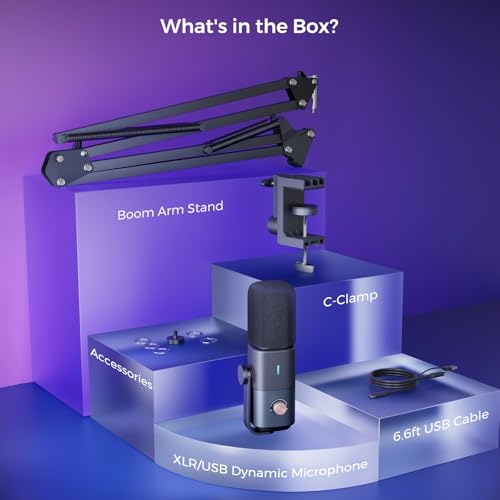 The convenience of USB and XLR connectivity means you can use the microphone with your computer or integrate it into a more complex audio setup with mixers and sound cards. The included boom arm offers stability and flexibility, allowing you to position the microphone perfectly for any recording environment.