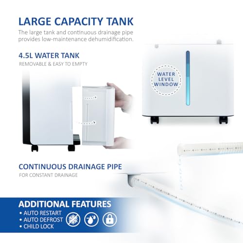 Whether you’re dealing with a damp basement, drying laundry indoors, or simply want to improve air quality, this versatile dehumidifier adapts to your needs effortlessly. With features like continuous drainage and a child lock, it is designed for modern living.
