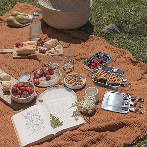 nicelock 2-Tier Stainless Steel Lunch Box with Folding Cutlery and Removable Divider (540ml, 800ml) - Reusable Metal Bento Container, Eco-Friendly, for Women Kids Work School
