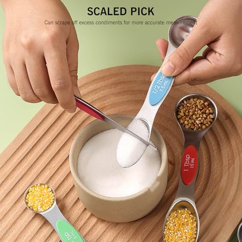 Are you tired of guessing measurements while cooking or baking? The NileHome 8-Piece Stainless Steel Measuring Spoons Set is here to make your culinary adventures more enjoyable and precise. With its innovative double-head design, you can easily reach into any jar or bottle to scoop out spices, herbs, and other ingredients without any mess.