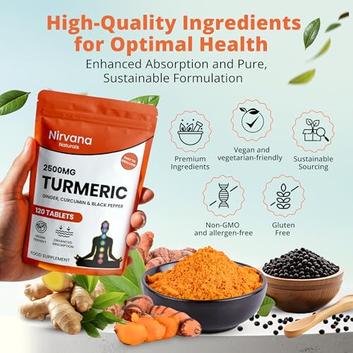 If you're on the lookout for a natural supplement to enhance your health, look no further than Nirvana Naturals Turmeric Tablets. With an extraordinary 2500mg of turmeric per dose, these tablets pack a powerful punch thanks to their 95% curcumin extract. Unlike many other options on the market, our formulation combines the benefits of ginger and black pepper, which not only boosts absorption but also maximises the health benefits associated with turmeric.