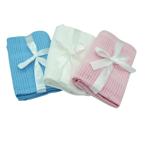 Available in elegant shades of white, pink, and blue, these blankets are perfect for any nursery and make an excellent gift for new parents. Their versatility means they can be used in a variety of settings – whether at home in the crib or on the go in a pram or car seat. Plus, their easy-care design means you can keep them fresh and soft with minimal effort.