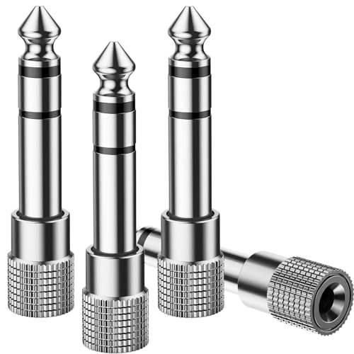 - Discover the NUOOO 4 Pcs Headphone Adapter Jack, the ultimate solution for all your audio connection needs. This premium quality silver-plated headphone jack adaptor features a robust 6.35mm (1/4 inch) stereo jack plug on one end and a 3.5mm stereo jack socket on the other. Constructed with a fully shielded die-cast metal shell, this adapter ensures durability and longevity, making it perfect for both professional and personal use.
