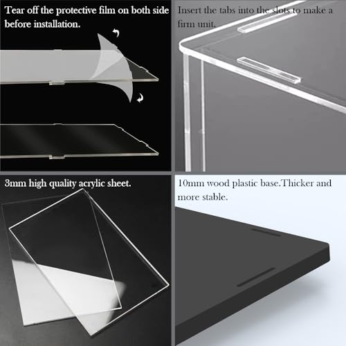 Made from high-quality acrylic and a durable wood plastic base, this display case ensures that your items are not only safe from dust and damage but are also presented in a way that will captivate anyone who sees them. Featuring a transparent design with 98% light transmittance, your collectibles will shine brilliantly from all angles.