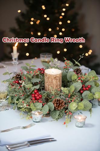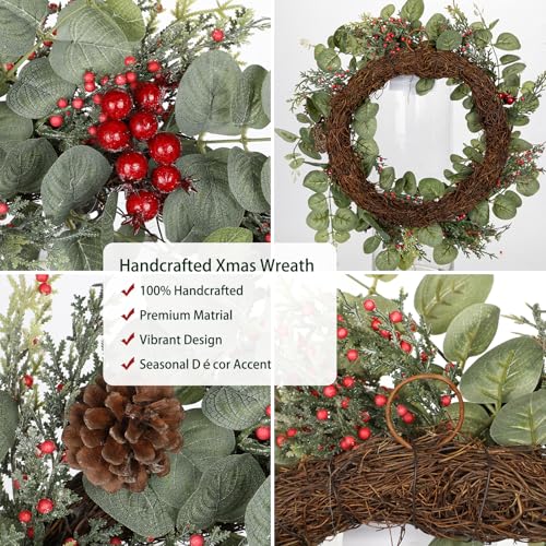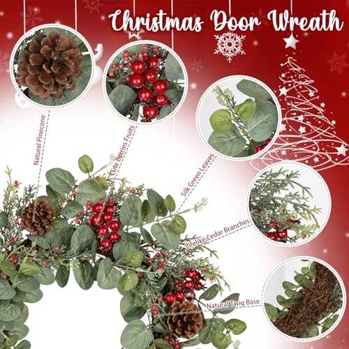 Oairse 18 inch/46cm Christmas Wreath Small Christmas Wreath for Front Door Christmas Door Wreaths with Berries Pine Cones Cedar Eucalyptus Leaves Aritificial Wreath for Xmas Indoor Outdoor Decorations