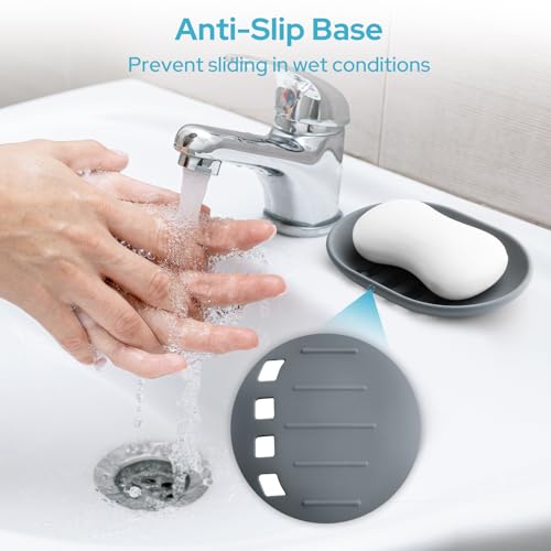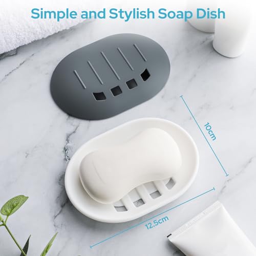 Oamwrae 2pcs Silicone Soap Dish with Drainage, Non-slip and Portable Soap Holder, Soap Dishes for Bathroom, Shower, Kitchen (Grey & White)