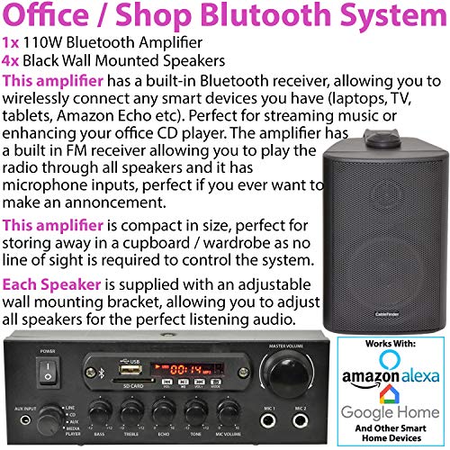 Are you looking to enhance your audio experience at home or in your office? The Loops Office/Shop Bluetooth Music System is here to revolutionise the way you enjoy music. This all-in-one audio solution includes a powerful 110W Karaoke Amplifier and four sleek 70W wall-mounted speakers, ensuring that every note is delivered with clarity and depth.