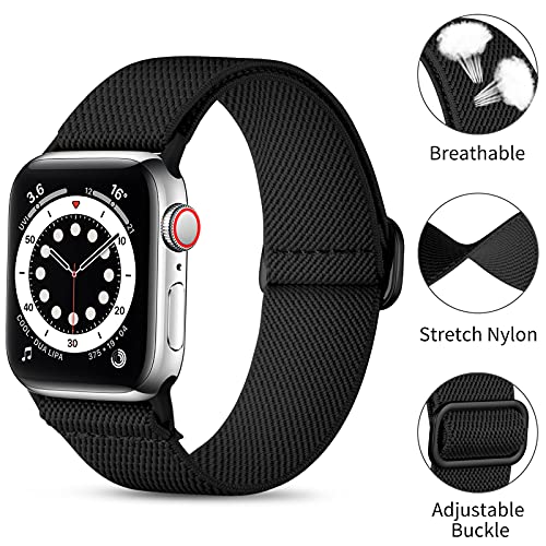 Oielai Solo Loop Strap Compatible with Apple Watch Strap 38mm 40mm 41mm 42mm, Adjustable Stretch Nylon Braided Sport Replacement Strap for iWatch SE Series 10/9/8/7/6/5/4/3/2/1, Black