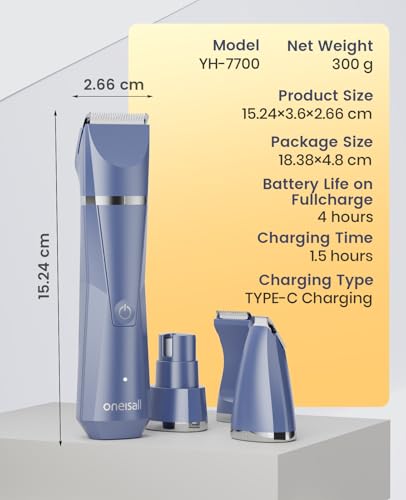 oneisall Dog Cat Grooming Kit 4 in 1 Cordless, Quite Dog Paw Trimmer for All/Sensitive Areas, Dog Trimmer for Grooming, Pet Clippers for Small Dogs/Cats/Rabbits/pet Mouse