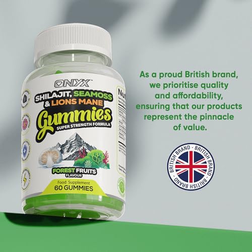 Onyx Sea Moss, Shilajit, Lion's Mane Complex 60 Gummies Vitamin D3 & C - 5 in 1 Natural Energy, Focus, Immunity and Gut Health Support Wellness Supplement