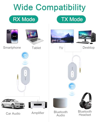 - Discover the ultimate listening experience with the ORIA Bluetooth Adapter, a versatile 2-in-1 transmitter and receiver designed for all your audio needs. This innovative device seamlessly transforms non-Bluetooth devices like your TV, computer, or even in-flight entertainment systems into Bluetooth transmitters, allowing you to enjoy high-quality audio wirelessly. In receiver mode, the adapter effortlessly connects to wired speakers, home stereo systems, or car radios, making it your perfect travel companion.