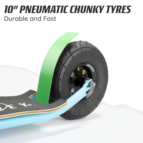 Imagine cruising through your local park, conquering hills, and showing off your BMX skills—all with the confidence that the Osprey Misfit provides. With its ultra-wide kickboard and robust construction, you'll feel secure as you navigate through various terrains. The 10" pneumatic tyres ensure a smooth ride, whether you're on a gravel path or a city street.