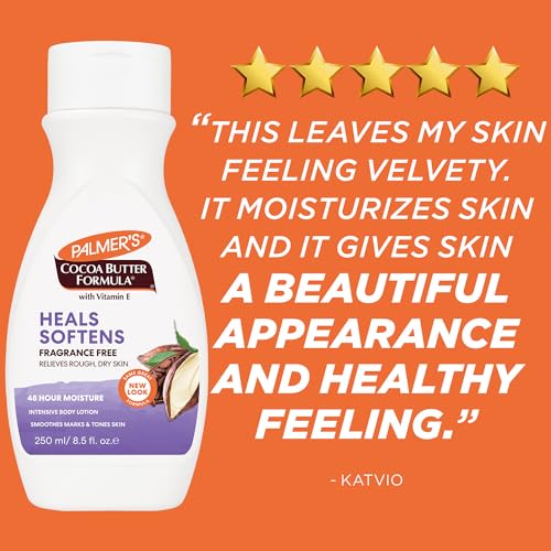 - Discover the nourishing power of Palmer's Cocoa Butter Formula Fragrance-Free Moisturising Lotion in a generous 250 ml size. This exceptional lotion is perfect for those seeking deep hydration without the distraction of added fragrances. Crafted by the renowned ET Browne Drug Co., Inc., Palmer's has built a reputation for its high-quality, effective skincare products, and this lotion is no exception. Packed with the goodness of cocoa butter, this lotion is designed to soothe and soften dry skin, making it an ideal choice for everyday use. Whether you’re combating the harsh effects of winter, restoring moisture after sun exposure, or simply wanting to maintain your skin’s natural softness, this lotion has got you covered. Its rich, creamy texture absorbs quickly, leaving your skin feeling velvety smooth and deeply hydrated without any greasy residue. What truly sets this moisturising lotion apart is its fragrance-free formulation, making it suitable for sensitive skin types and individuals who prefer a more minimalist approach to skincare. With Palmer's Cocoa Butter Lotion, you can enjoy the benefits of hydration without any overpowering scents. Imagine applying this lotion after a relaxing bath, or using it daily as part of your skincare routine to keep your skin feeling supple and rejuvenated. Its versatile nature makes it a staple in your home, perfect for the whole family. Don’t miss out on the opportunity to transform your skin with Palmer's Cocoa Butter Formula Fragrance-Free Moisturising Lotion. Embrace the luxurious hydration and indulge your skin today!