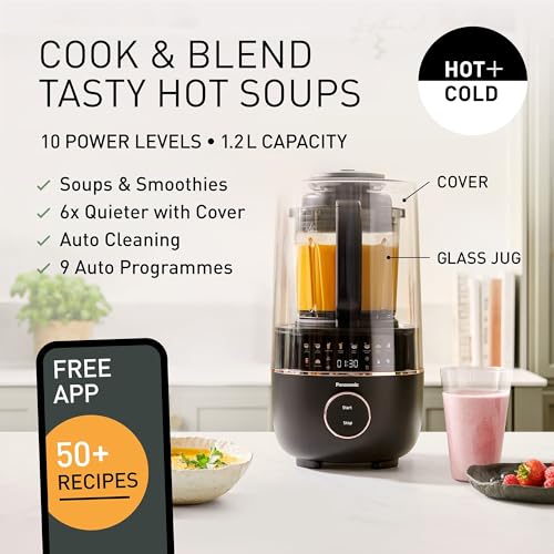 - Elevate your culinary experience with the Panasonic MX-HG4401KXC Blender & Soup Maker, a powerhouse that combines functionality and style. Effortlessly whip up delicious soups, smoothies, and baby purees from fresh, raw ingredients in mere minutes, thanks to its robust 800W motor and advanced 6-Fin blades. This versatile appliance is not just for hot soups; it also excels in crafting cold delights like nut milks, frozen drinks, and vibrant smoothies at the touch of a button.