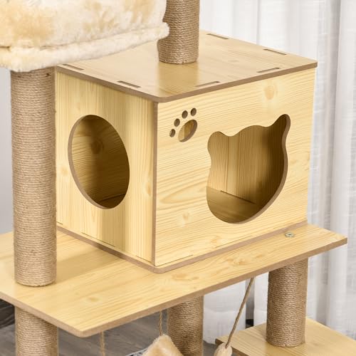 If you’re a cat owner looking to enhance your pet’s life while protecting your furniture, the PawHut Wooden Cat Tree is the perfect solution. This stylish and functional cat tree offers a myriad of features designed to keep your furry friend entertained and comfortable.