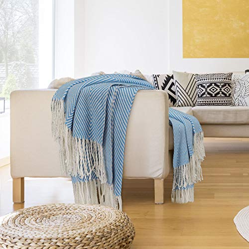 - Introducing the PiccoCasa Decorative Throw Blanket with Fringes in Herringbone Design—your perfect companion for comfort and style! Crafted from 100% skin-friendly acrylic, this lightweight and breathable knitted throw is designed to keep you warm without feeling heavy. Measuring 51” x 67”, it’s the ideal size for snuggling up on the sofa or curling up for a nap.