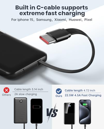 But it doesn’t stop there! This power bank is designed with convenience in mind, featuring built-in cables so you'll never have to fumble for a charging cord again. The LED power display eliminates the guessing game associated with battery levels, giving you peace of mind. Safety is a priority, too, with cutting-edge technology to prevent overheating and overcharging.