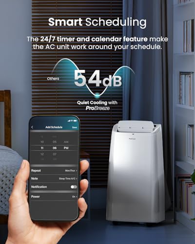 Pro Breeze 4-in-1 Powerful Portable Air Conditioner 12,000 BTU - Smart Home WiFi Compatible - App & Voice Control - Heater & Dehumidifier mode, 24hr Timer & Window Venting Kit - Class A Energy Rating