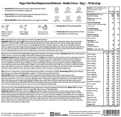 This plant-based shake is perfect for anyone looking to lose weight or simply maintain a nutritious diet. With only 200 calories per serving, it allows you to enjoy a fulfilling meal without the guilt. Imagine being able to fuel your body with up to 25g of protein, derived from a unique blend of five sources, all while indulging in a rich Vanilla Crème flavour.
