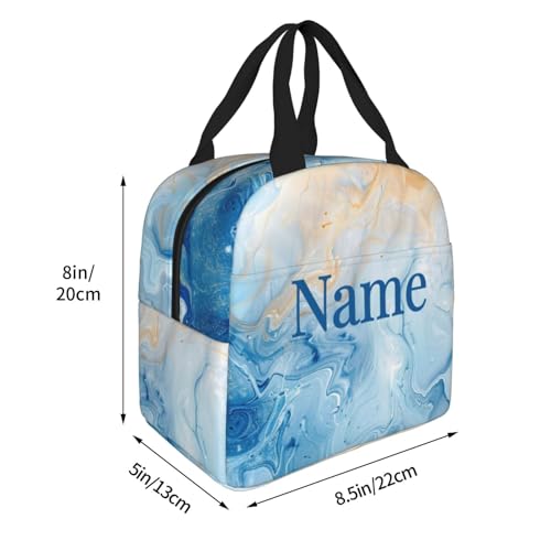 PRyLqKS Custom Lunch Bag Blue Marble Pastel Personalized Insulated Lunch Box with Name Reusable Cooler Tote for Adults Student Girl Boy Work Office School Picnic Over 3 Years Old