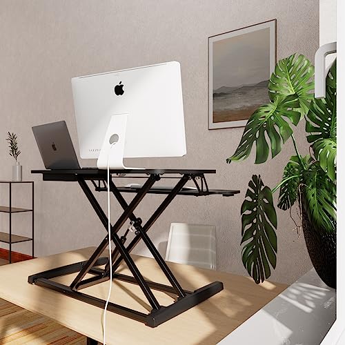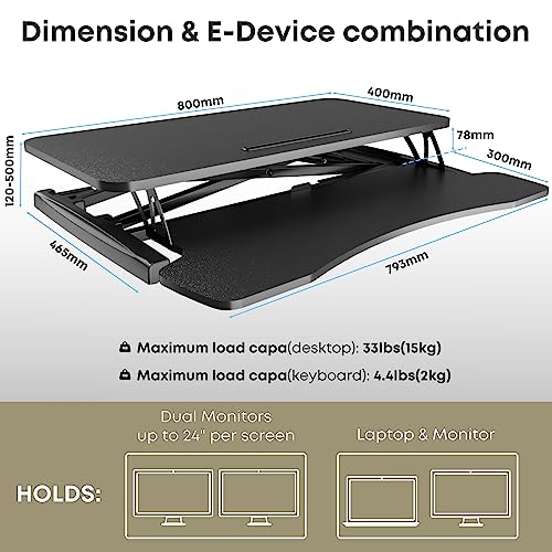 PUTORSEN 32 inch Standing Desk Converter, Height Adjustable Sit Stand Desk Converter for PC Computer Screens, Ergonomic Adjustable Desk Riser with 31 inch Keyboard Tray and Tablet Slot, Black