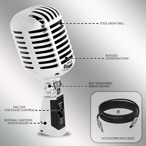 If you’re seeking the perfect microphone that combines vintage charm with cutting-edge audio technology, look no further than the Pyle Classic Retro Dynamic Vocal Microphone. This beautifully designed mic not only adds a touch of elegance to your stage presence but also ensures top-notch sound quality. Its cardioid pickup pattern is ideal for reducing background noise, making it perfect for both live performances and studio recordings.
