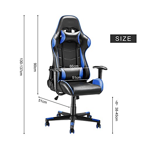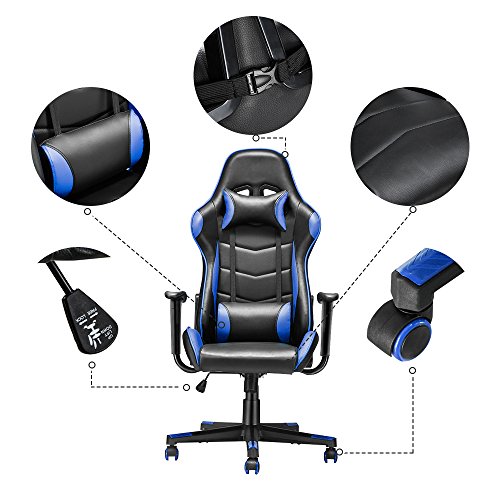 Racing Style Gaming Chair, Office Chair with Lumbar Support Swivel Chair with Armrest PU Leather High Back (Blue, without footrest)