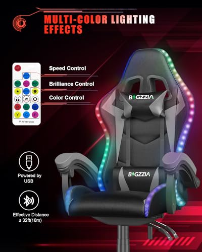 Racingreat Gaming Chair, Video Game Chair, Ergonomic Gaming Chair for Adults, Height Adjustable Reclining Computer Chair with Headrest and Lumbar Support (With RGB, Grey)