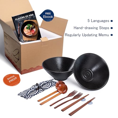 Caring for your bowls is worry-free; they're microwave and dishwasher safe, allowing you to spend more time enjoying your meal and less time cleaning up. Whether you're treating yourself or gifting a loved one, this ramen bowl set is sure to impress. Elevate your culinary adventures and make every meal an occasion with this exquisite set!