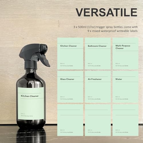These bottles are not just environmentally friendly, as they are made from 100% recycled PET, but they also offer practicality and versatility. With three 500ml spray bottles and nine waterproof labels, you can easily create a personalised cleaning kit that suits your needs. Whether you’re tackling tough stains, watering your favourite houseplants, or even preparing for a summer BBQ, these bottles are dependable companions.