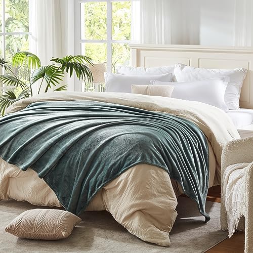 Rendiele Super Soft Throw Blanket for Sofa Couch Bed, 280GSM Lightweight Plush Warm Flannel Fleece Throw Single, Washable Fluffy Cozy Blankets for All Season 125 x 150 cm, Green