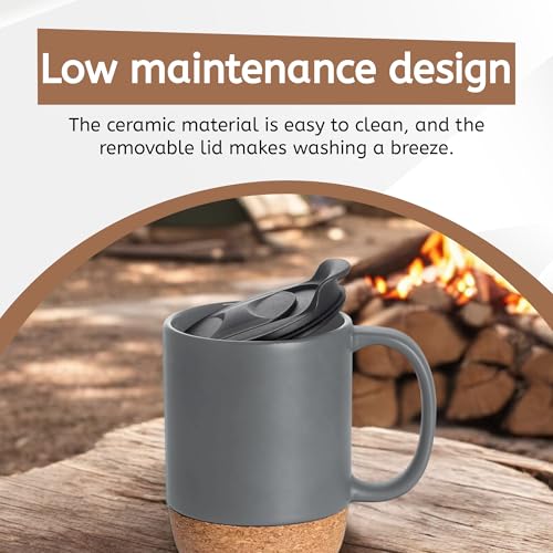 Reusable Ceramic Travel Mug with Handle and Lockable Lid & Heat Proof Cork Base - Spill & Leak Proof, Refrigerator Safe, Heat Resistant Coffee Mug - Dark Grey