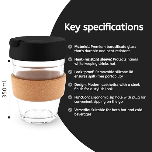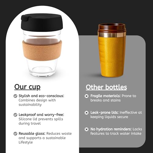 - Introducing the Reusable Glass Coffee Cup with Lid – your perfect travel companion for enjoying your favourite beverages on the go! Crafted from premium toughened glass, this stylish cup not only exudes modern elegance but also boasts exceptional durability, ensuring it withstands cracks and scratches. Say goodbye to flimsy disposable cups and embrace sustainability with this eco-friendly alternative that helps reduce waste and protect our planet.