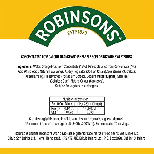 Whether you're a busy parent seeking healthier options for your children or a health-conscious individual looking for a tasty treat, Robinsons Double Strength Orange & Pineapple No Added Sugar Fruit Squash is your perfect match. Make hydration exciting again with this deliciously fruity drink!