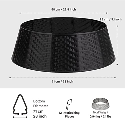 Round Christmas Tree Skirt - Sturdy & Durable Christmas Tree Collar - 9.1" H 22.8" Top & 28" Base Diameter Woven Design Xmas Tree Skirt - 12 Pieces Plastic Ring for Artificial or Real Trees - Black