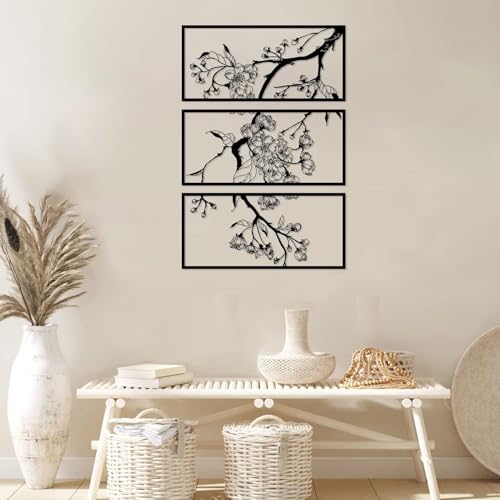- Discover the exquisite charm of the ruelen 3 Pcs Large Metal Flowers Wall Décor, an elegant addition to any space that effortlessly combines modern minimalist design with artistic flair. This stunning wall art features three distinct floral patterns crafted from black metal, creating a beautiful 3D effect that enhances the visual appeal of your walls. Measuring 22 x 10.2 inches each, with a display size of approximately 37.5 x 22 inches, these pieces are perfectly proportioned to adorn your home without overwhelming your space.