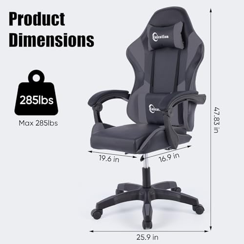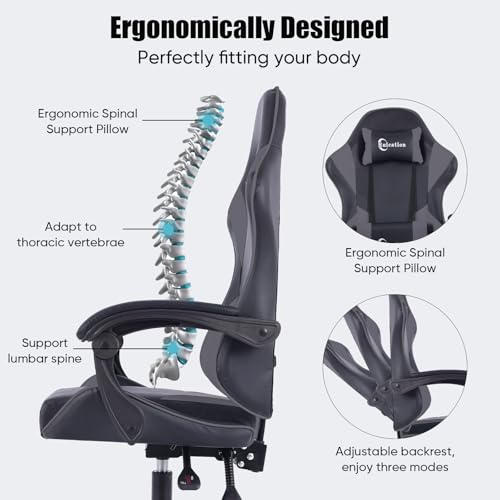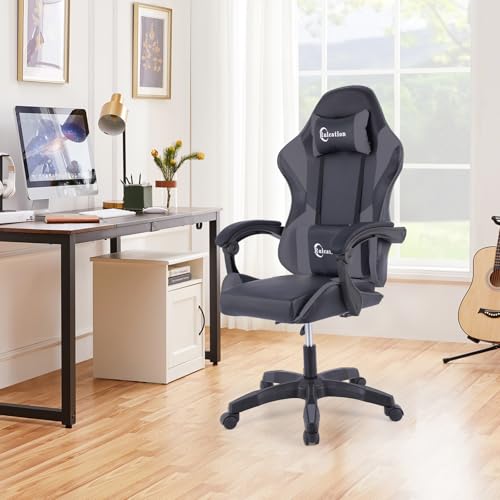 Ruication Gaming Chair Office Chair Desk Chair Swivel Tilt Computer Chair Ergonomic Design with Headrest & Lumbar Cushion Reclining Back Support for Home Office (Grey)
