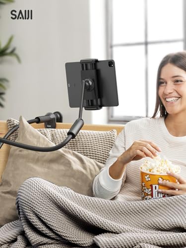 SAIJI [120CM] Gooseneck Tablet Holder for bed, One-Hand Adjustable iPad holder, kindle holder for reading in bed, Compatible with iPad iPhone, Fire, Switch All 4.7-13" Device