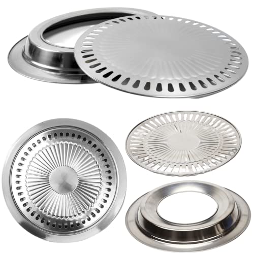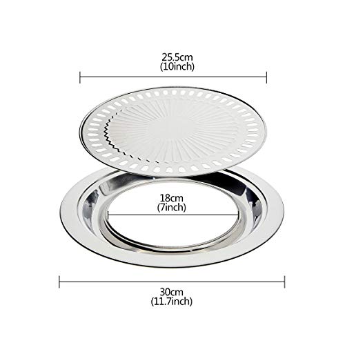 Saim Korean BBQ Grill Pan - Stainless Steel Round Griddle Tray for Outdoor Barbecue and Indoor Cooking - Suitable for Any Heat-Generating Stove