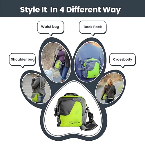 Scorpeon Dog Treat Pouch for Training | Dog Walking Bag Holder for Kibbles, Pet Food & Toys | Dog Trainer Essentials with Water Bottle & Holder, Poop Bag Dispenser & Roll, Collapsible Bowl- Green