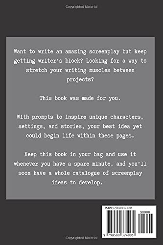 - Are you ready to unleash your creativity and pen the screenplay of your dreams? Look no further than "Screenwriting Prompts: Inspiring Prompts to Ignite Your Next Masterpiece." This meticulously crafted screenwriting inspiration journal is your ultimate companion, designed specifically for writers, filmmakers, and students alike. Independently published, this notebook stands out with its unique collection of prompts that stimulate your imagination and help you break through writer’s block.