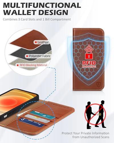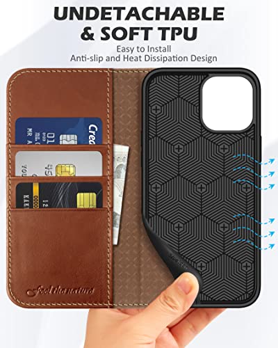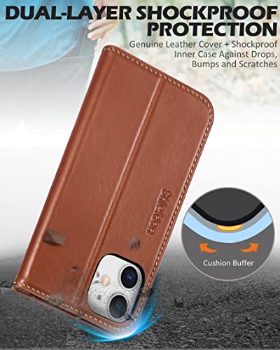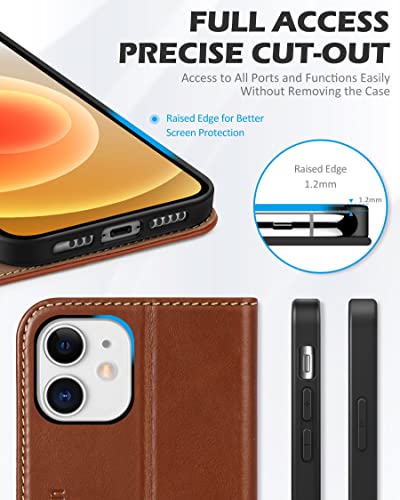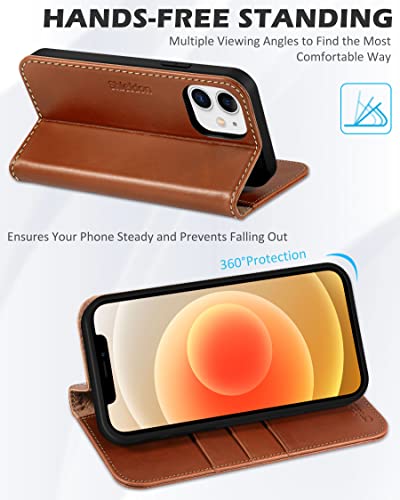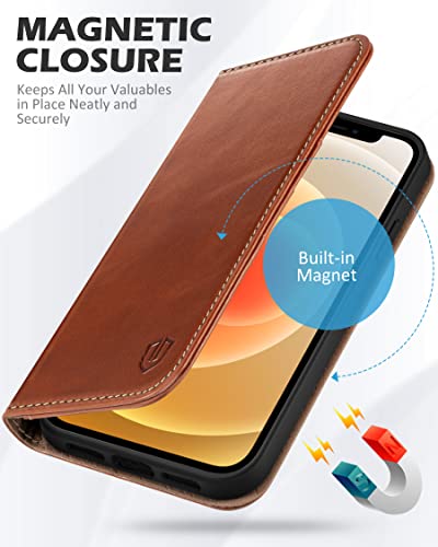 SHIELDON Wallet Case for iPhone 12, Genuine Leather Protective Folio Case with [Card Slot][Viewing Stand][RFID Blocking] Magnetic Shock Absorbing Case Compatible with iPhone 12 Pro 6.1" - Retro Brown