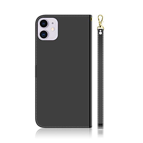 Shinyzone Mirror Leather Case Compatible with iPhone 11, Magnetic Closure, Card Slots, Mobile Phone Case, Flip Cover Stand with Hand Strap, Cover Mirror Makeup Design, Protective Case, Black