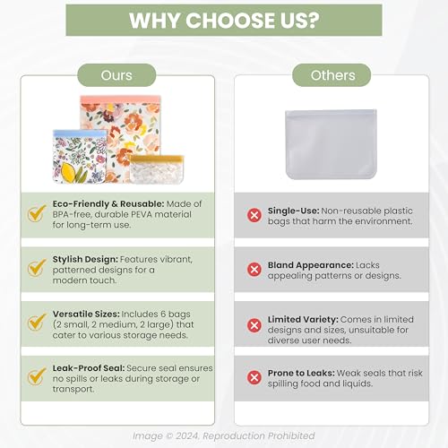 Imagine effortlessly organising your fridge and freezer with vibrant, patterned bags that keep your food fresh and secure. With a leak-proof design, you can confidently store everything from soups to solid snacks without worrying about spills. Plus, their reusable nature means you’re actively contributing to reducing waste while saving money in the long run.