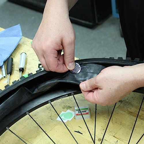 Equipped with six pre-glued patches and a handy metal scruffer, the Slime Skabs Patch Kit is designed for cyclists who value efficiency and ease of use. The patches require no glue, making repairs mess-free and straightforward. Simply scuff the punctured area, stick on the patch, and create a tyre sandwich to ensure a secure hold.
